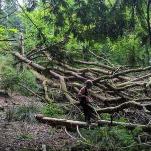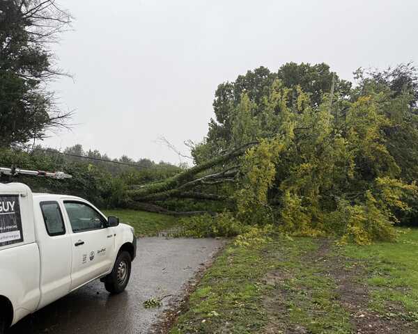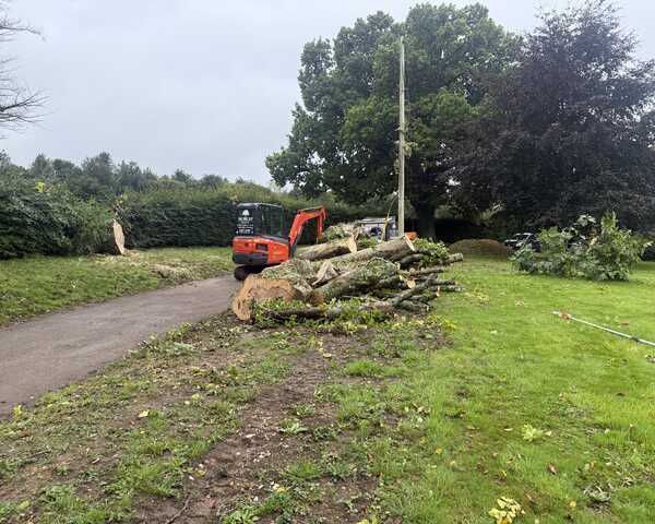 Sometimes the UK weather makes emergency tree work necessary. We're an experienced team available to deal with emergency tree surgery jobs of any size. From small torn branches overhanging property after strong winds, to large, uprooted mature trees in need of machinery removal to get roadways working as quickly as possible.